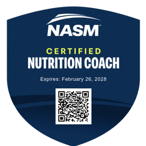 The reputation of NASM and their highly regarded certifications is what led me to continue my education with NASM as I pursed my certification for Nutrition Coaching.